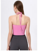 The sleek halter neckline elongates your silhouette, while the U-shaped front and back offer a chic, open-shoulder look that’s both supportive and stylish. It’s the perfect balance of coverage and breathability.