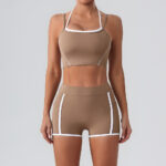 The sleek white piping on neutral brown gives this set a stylish, elevated look that stands out in the studio or on the street. It’s the perfect mix of sporty and feminine!