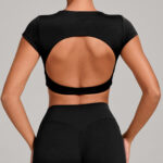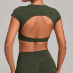 Backless Short-Sleeve Sports Top | Buttery Soft Built-In Bra Crop Tee