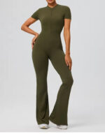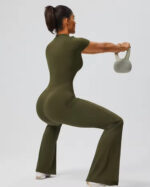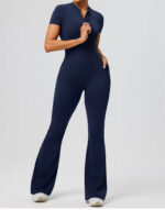 Seamless Gym Jumpsuit – Zipper Front Short Sleeve Bodysuit, Custom Logo, One-Piece Activewear for Women