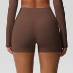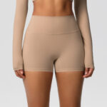 Solid color double-sided brushed high-waisted tight-fitting hip-lifting yoga shorts, running fitness sports shorts for women