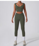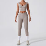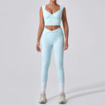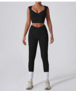 Get ready to revolutionize your workout wardrobe with our two-piece sports bra/tank top and leggings set! This isn’t just a regular gym outfit; it’s a complete, versatile wardrobe solution, stylish and versatile, all in one set. Designed for versatile women, this set allows you to mix and match freely, easily handling various activities while enjoying comfort and style.