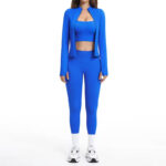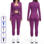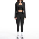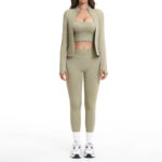 👚 Complete 3-Piece Set – Includes zip-up long sleeve jacket, ribbed sports top, and high-waist seamless leggings. One purchase, three ways to style.