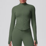 ๐งฅ Versatile Full-Zip Jacket: The standout piece is the long-sleeve top featuring a convenient full front zipper. This makes it incredibly easy to layer on and off as your body temperature changes during outdoor workouts. The mock neck adds extra coverage and a classic, sporty look.