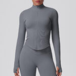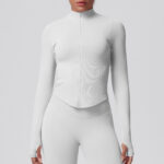๐ฉณ Comfortable High-Waisted Shorts: Paired perfectly with the jacket are a set of high-waisted shorts. The elastic waistband ensures a secure, comfortable fit that stays in place during movement, whether you’re stretching, running, or simply relaxing.